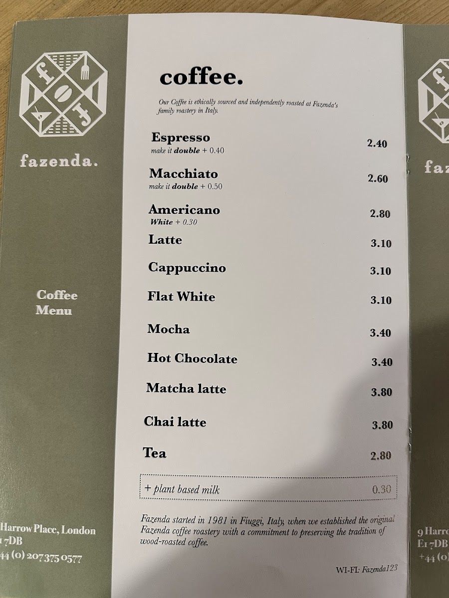 The menu at Fazenda Uk offers a delightful range of treats and beverages, showcasing a variety of flavors that cater to both sweet and savory cravings. For dessert lovers, Tiramisu Cake and Coffee Cake stand out as popular choices, with their rich, indulgent flavors that provide the perfect end to any meal. The Apple Cake is another sweet highlight, offering a comforting, homey taste that pairs wonderfully with a hot drink.